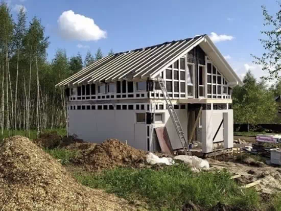 Монтаж каркасно-рамочной кровли в двухэтажном доме из газоблока. М.О., Тучково. Декабрь 2022 г.